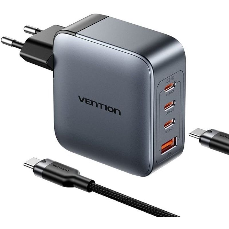 Ładowarka Vention 100W GaN 1x USB-A 3x USB-C + kabel USB-C do USB-C 1m