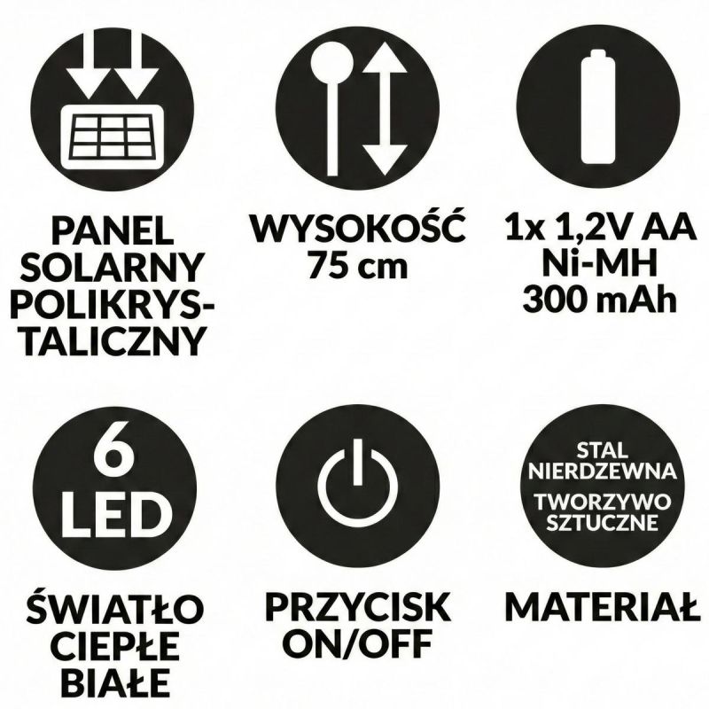 LAMPA SOLARNA TRAWA 6 LED 75CM