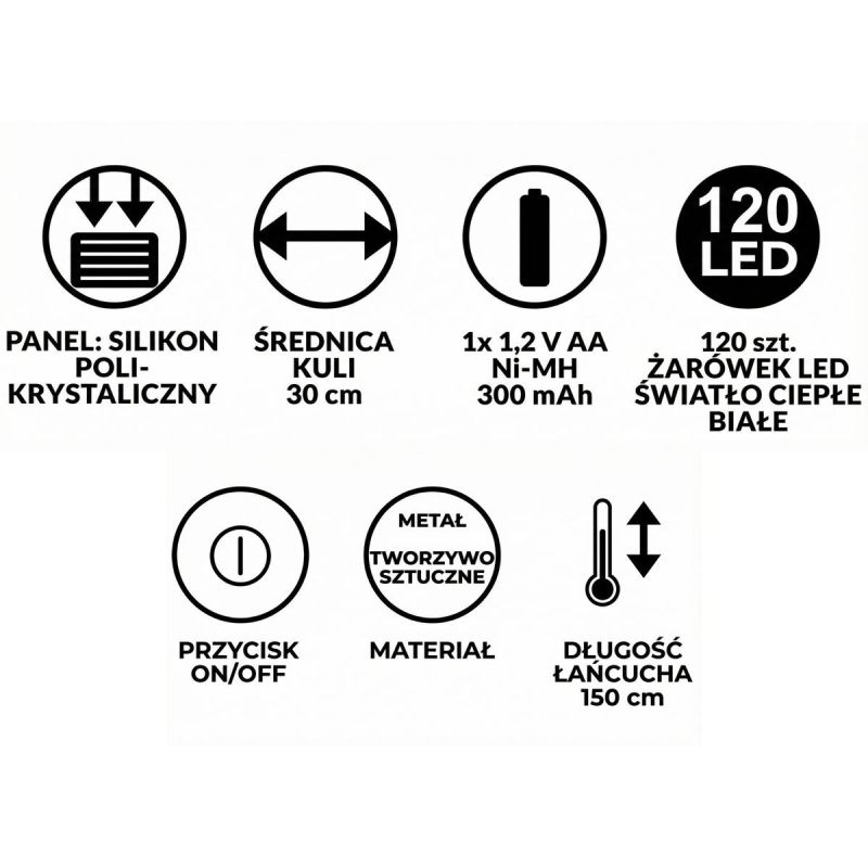 LAMPA SOLARNA WISZĄCA KULA 30CM 120 LED CIEPŁY BIAŁY