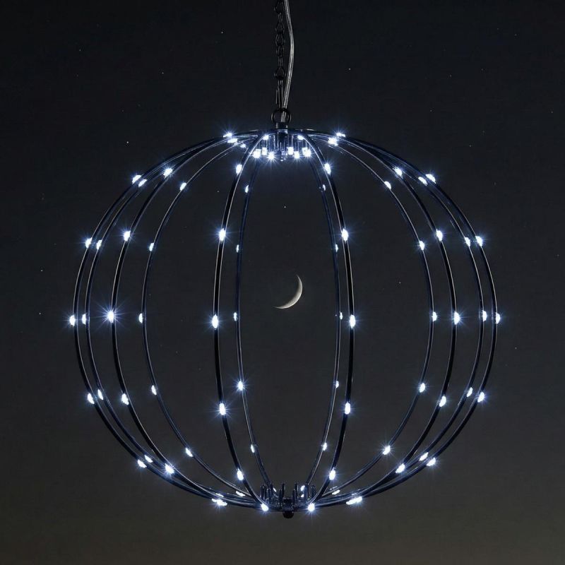 Ta wisząca lampa solarna w formie metalowej kuli z 120 diodami LED w kolorze zimnej bieli tworzy wyrazisty efekt świetlny i pozwala zbudować stylową aranżację bez kabli i kosztów prądu.