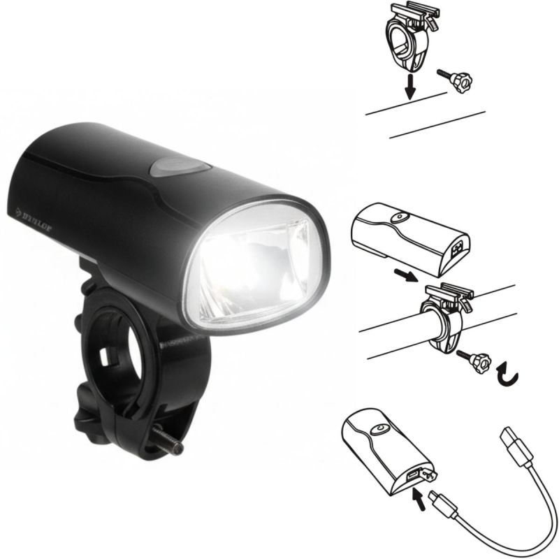 LAMPKA ROWEROWA PRZEDNIA LED USB-C CERTYFIKAT 2 TRYBY DUNLOP