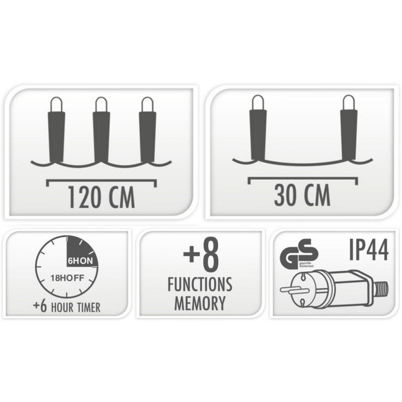 Dzięki 5-metrowemu przewodowi i zintegrowanemu timerowi 6/18, kurtyna świeci wtedy, kiedy chcesz – bez potrzeby codziennego włączania. Wystarczy raz ustawić, by cieszyć się światłem przez cały sezon.