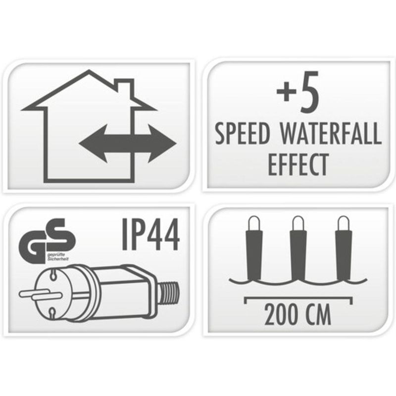 Kurtyna ma do wyboru 5 różnych prędkości, dzięki temu stworzysz wyjątkową i niepowtarzalną dekorację. Sekwencje można przełączać dzięki specjalnemu przyciskowi na zasilaczu.