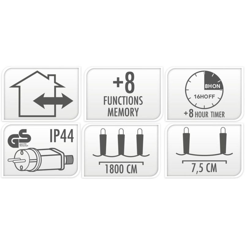Funkcja timera sprawi, że po jego aktywacji łańcuch powtarzalnie świeci przez 8 godzin, a następnie wyłącza się na 16 godzin. Można go w każdej chwili zresetować przytrzymując przycisk na wtyczce przez parę sekund (zielone światełko timer działa).