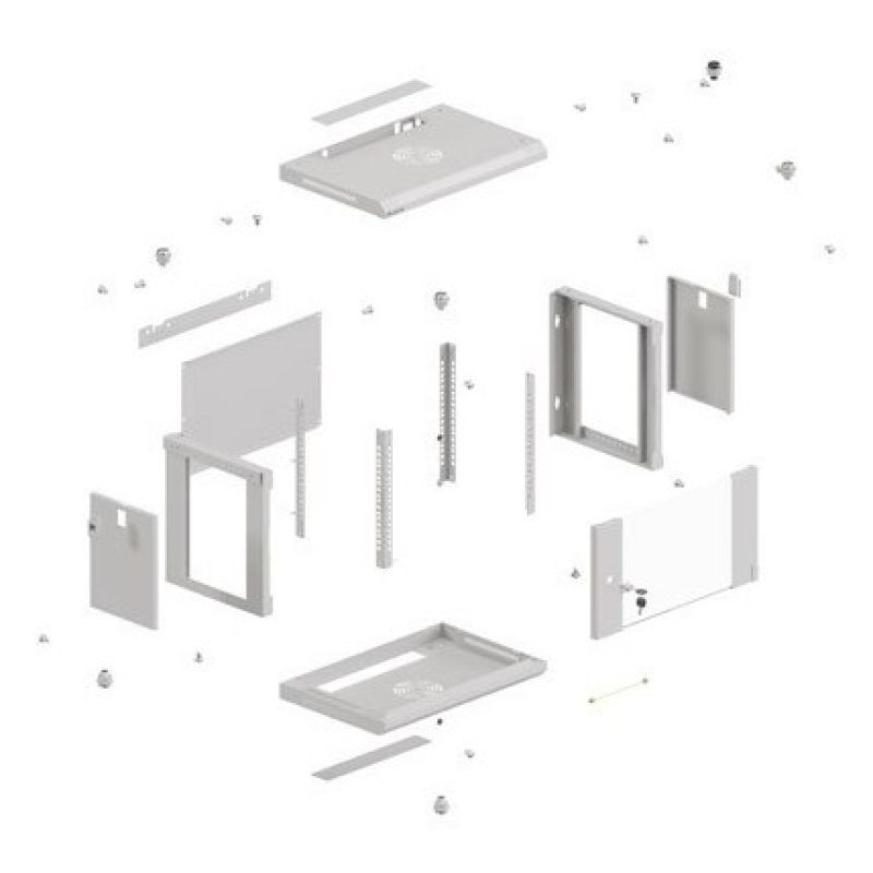 9. LANBERG SZAFA INSTALACYJNA RACK WISZĄCA 19" 4U 540X350 SZARA DRZWI PRZESZKLONE (FLAT PACK)