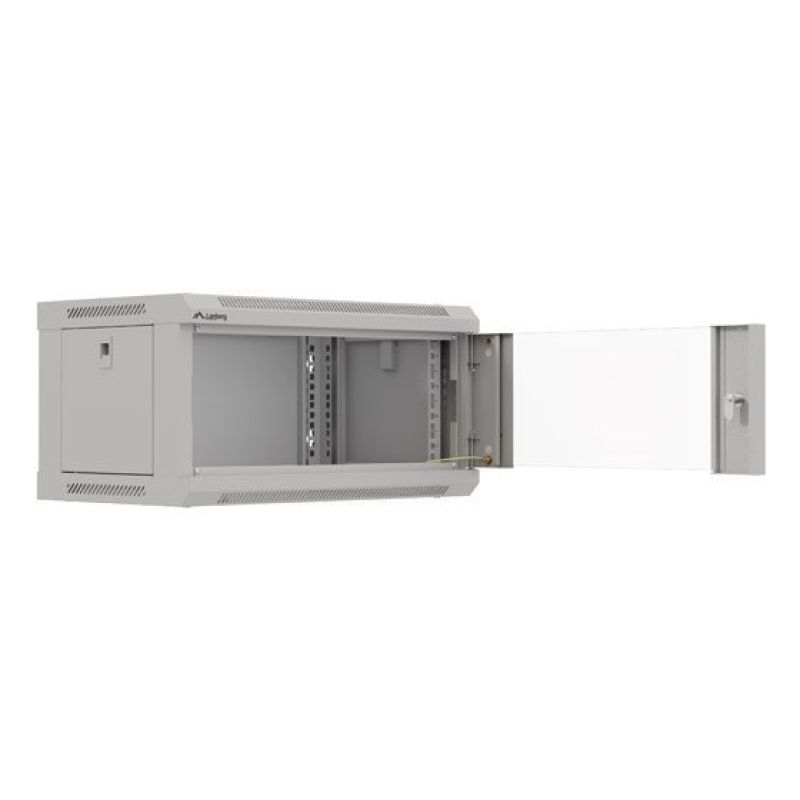 25. LANBERG SZAFA INSTALACYJNA RACK WISZĄCA 19" 4U 540X350 SZARA DRZWI PRZESZKLONE (FLAT PACK)