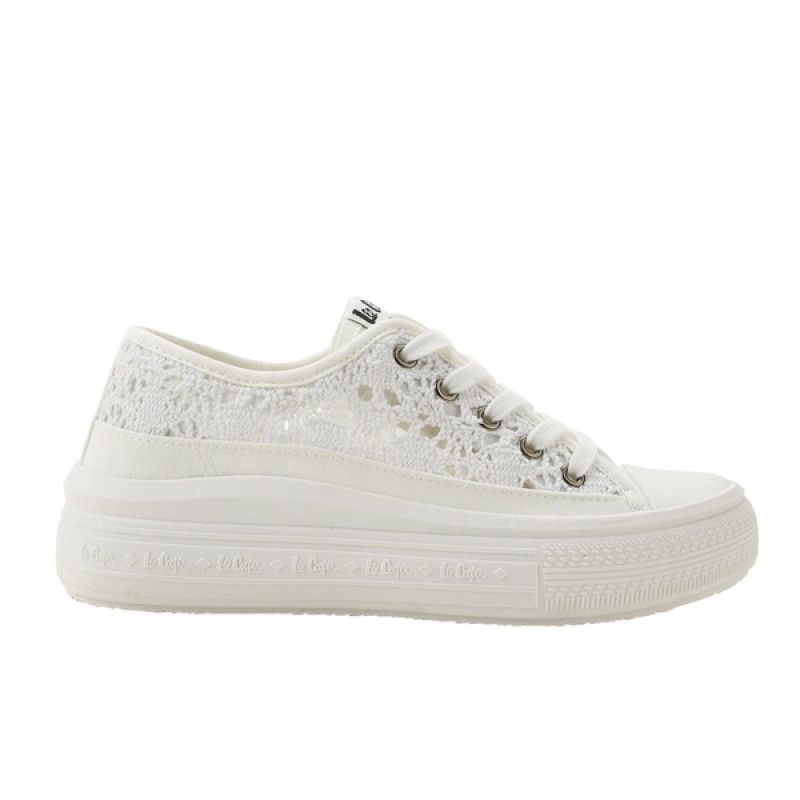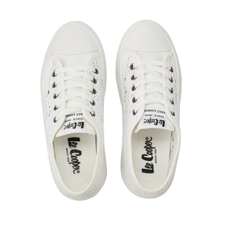 Lee Cooper buty damskie sportowe trampki białe platforma koronkowe