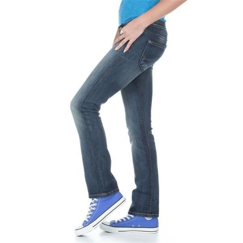 Krój: niski stan, proste nogawki Materiał: 97% bawełna 3% elastan Modne dżinsy biodrówki z prostymi nogawkami od kolan.