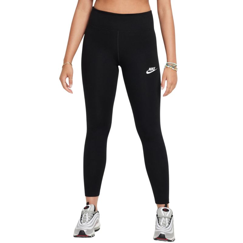 Legginsy dla dzieci Nike Sportswear Classic czarne FZ5583 010 Legginsy dla dzieci Nike sprawdzą się na co dzień. Wysoki stan. Tkanina, w której przeważa bawełna wzbogacona poliestrem i elastanem, jest miękka w dotyku, elastyczna i odporna na rozciąganie. Niewielkie logo. Materiał: 50% bawełna, 42% poliester, 8% elastan