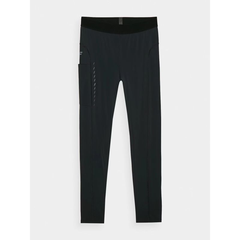 Getry do biegania w terenie 4F męskie z szybkoschnącymi włóknami w technologii 4FDry, które wspierają odprowadzanie wilgoci z dala od ciała. Otwarta kieszeń z boku. Elastyczny pas bez regulacji. Suwaki u dołu nogawek ułatwiają nakładanie i zdejmowanie legginsów. Całości dopełniają elementy odblaskowe dla poprawy widoczności.