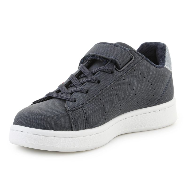 Model wyposażony jest w elastyczne sznurówki oraz dodatkowe zapięcie na rzep, co ułatwia szybkie zakładanie i zdejmowanie obuwia oraz zapewnia lepsze dopasowanie i stabilność. Podeszwa syntetyczna zapewnia dobrą przyczepność do podłoża oraz bezpieczeństwo podczas codziennych aktywności.