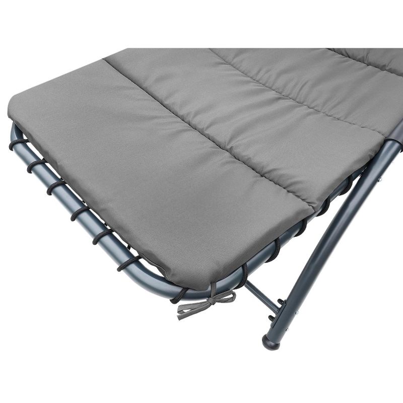 Mocny stalowy i gruby stelaż utrzyma maksymalnie udźwig aż do 150 kg, a miękki zagłówek pozwoli Ci wygodnie oprzeć na nim głowę i przyjąć wygodną pozycję podczas leżenia