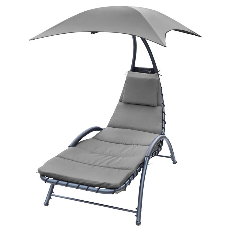 Chcesz podarować sobie odrobinę luksusu? Odprężyć ciało i rozpieścić zmysły. LEŻAK FOTEL Z PARASOLEM BERGAMO 200x125x180CM SZARY stworzy dla Ciebie wymarzoną strefę relaksu w ogrodzie, na tarasie czy balkonie!