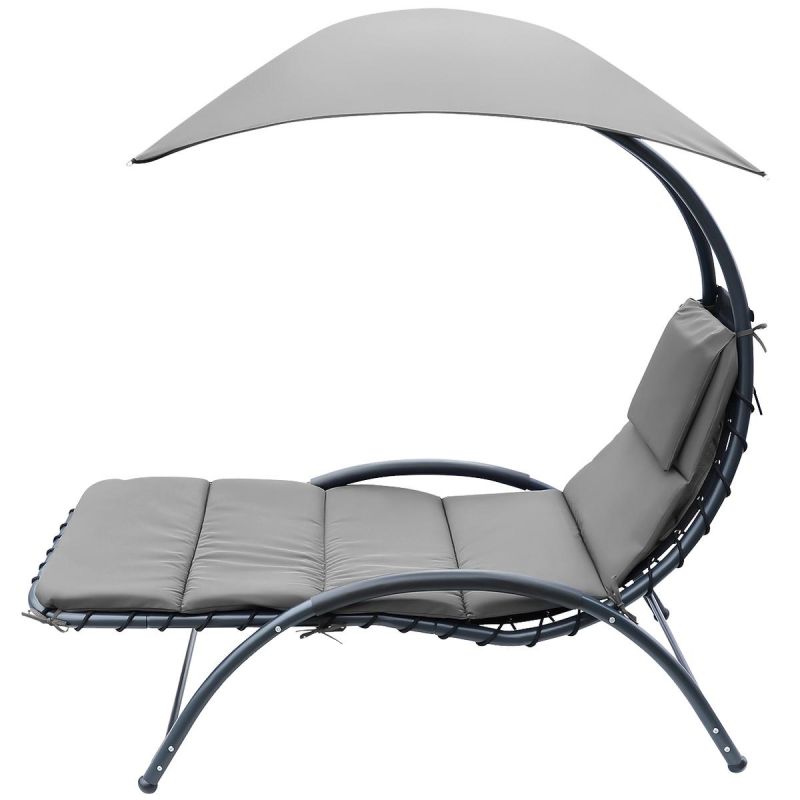 LEŻAK FOTEL Z PARASOLEM BERGAMO 200x125x180CM SZARY