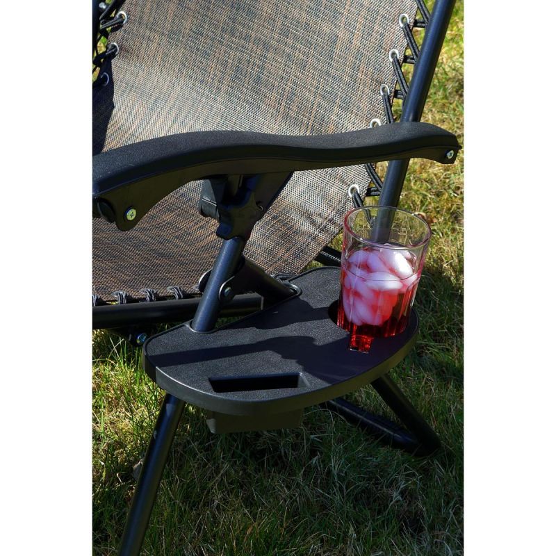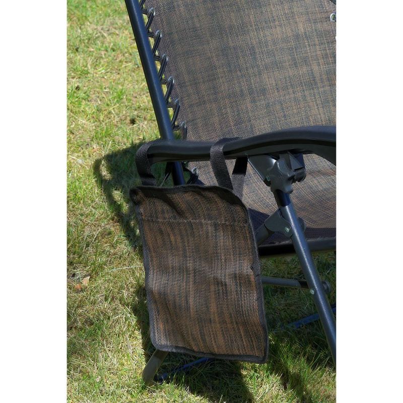 Miękki zagłówek pozwoli Ci wygodnie oprzeć na nim głowę i przyjąć wygodną pozycję podczas leżenia. Boczna kieszeń zapewni stały dostęp do gazety lub ulubionej książki, a stoliczek pozwoli postawić kubek z kawą, sok lub telefon. Stelaż fotela wykonany jest z solidnych i wytrzymałych stalowych rurek, utrzyma obciążenie aż do 120 kg!