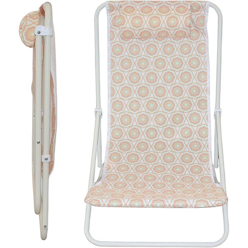 LEŻAK SKŁADANY PLAŻOWY Z ZAGŁÓWKIEM POMARAŃCZOWY to Twoja przepustka do błogiego odpoczynku – na plaży, w ogrodzie i gdziekolwiek chcesz złapać słońce. Rozkładasz, siadasz i… już jest dobrze!