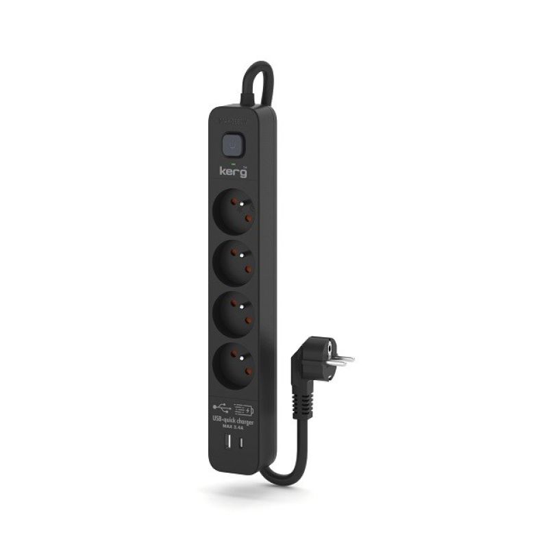 Listwa zasilająca KERG  z wyłącznikiem-4 gniazda USBC+USBA 16A 3m ; czarny