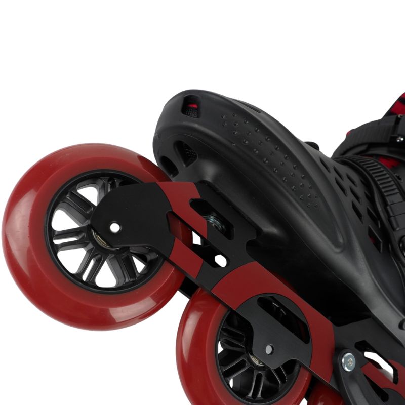 Łyżworolki Roces X35 3X110 TIF Savosin czarno-czerwone 400870 00001 Łyżworolki Roces sprawdzą się podczas jazdy freestyle. Model X35 TIF wybierany jest przez średnio-zaawansowanych i zaawansowanych użytkowników. Twarda skorupa z 3-stopniowym zapięciem odpowiada za stabilizację stopy. Użycie technologii Easy Entry System ułatwi przebieranie. Miękka wyściółka. Dodatkowe otwory. 3-kołowy system jezdny osadzony na zwrotnych łożyskach ABEC-7. Dane techniczne:· Skorupa i cholewka: wysokogatunkowy polipropylen· Easy Entry System: ułatwia zakładanie i zdejmowanie rolki· Zapięcie: aluminiowa klamra mikrometryczna na cholewce, klamra mikrometryczna na podbiciu, asymetryczne, szybkie sznurowanie· Łożyska: ABEC-7· Szyna: wytłaczane aluminium· Podkładki: aluminium· Kółka: PU (potocznie nazywane kauczukowymi) o średnicy 110 mm i twardości 84A · Hamulec w zestawie· Model nie zawiera płozy łyżwowej Uwaga: zalecamy wybór rozmiaru o jeden większy. (mają naprawdę ciasne dopasowanie i mają mały rozmiar. Są bardzo wąskie i nie polecamy ich osobom o szerszych stopach.) Pasek / pętla z tyłu buta służy do przenoszenia rolek i nie jest przeznaczony do ciągnięcia podczas zakładania rolek. Pamiętaj, aby sprawdzić śruby przed pierwszym użyciem i dokręcić je w razie potrzeby. Należy również pamiętać, że później trzeba regularnie sprawdzać stan śrub.