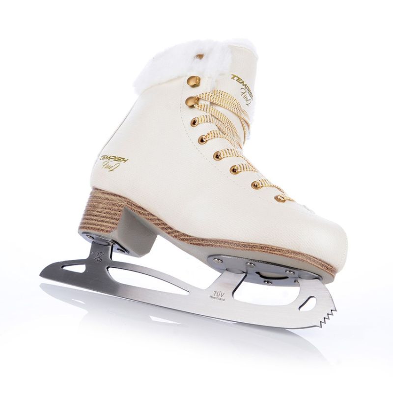 Łyżwy figurowe TEMPISH Fine II Styl, komfort i precyzja jazdy TEMPISH Fine II to eleganckie łyżwy figurowe, które łączą ponadczasowy design z nowoczesnymi rozwiązaniami technicznymi. Stworzone z myślą o osobach poszukujących komfortu i solidnego wykonania. Łyżwy sprawdzą się zarówno podczas rekreacyjnych przejażdżek, jak i bardziej wymagającej jazdy. Główne cechy: Elegancki wygląd i trwała konstrukcja: Stylowe wykończenie z PVC z teksturowaną powierzchnią zapewnia estetykę i odporność na uszkodzenia Trwałe materiały odporne na niskie temperatury i intensywne użytkowanie Komfort cieplny i wygoda: Miękka futrzana wyściółka zewnętrzna i wewnętrzna utrzymuje ciepło i poprawia komfort Wnętrze z pianki memory DB 120 idealnie dopasowuje się do kształtu stopy Precyzja i bezpieczeństwo jazdy: Anatomiczne wsparcie kostki zmniejsza zmęczenie podczas dłuższej jazdy Ostrze TEMPISH WAVE z polerowanej stali nierdzewnej gwarantuje świetną kontrolę i trwałość Łyżwy TEMPISH Fine II to doskonały wybór dla osób ceniących komfort, ciepło i elegancki wygląd na lodowisku. Dzięki zaawansowanej konstrukcji i wysokiej jakości materiałom, ten model zapewnia stabilność i precyzję jazdy, nie rezygnując ze stylu. DANE TECHNICZNE Zalecane zastosowanie Łyżwiarstwo rekreacyjne Materiał zewnętrzny Struktura PVC z modyfikacją PIMPLE, sztuczne futro Materiał wewnętrzny Wełna syntetyczna – termoizolacja i komfort Anatomiczna kostka TAK Konstrukcja Wygodne dopasowanie do kształtu stopy Ostrze TEMPISH WAVE, stal nierdzewna, polerowane System zapięcia Sznurowadła Wyściółka Pianka memory DB 120
