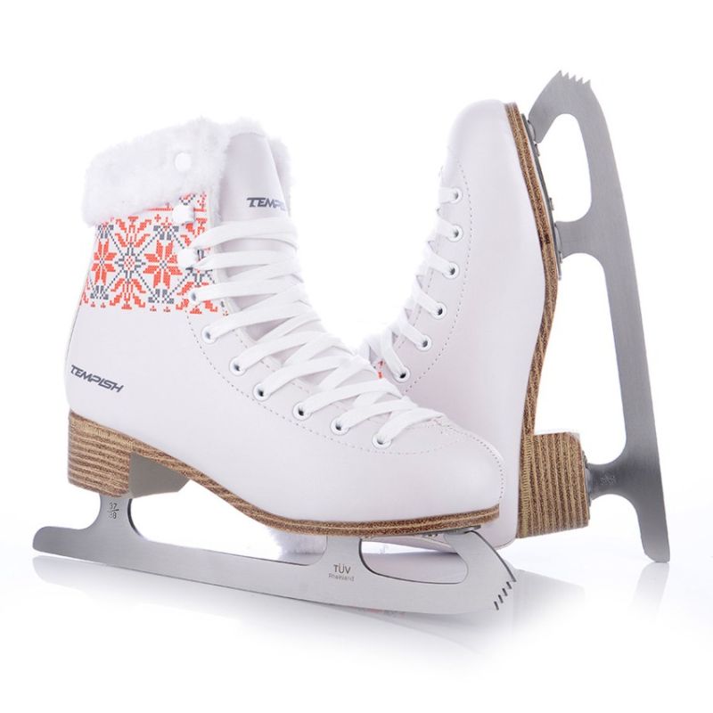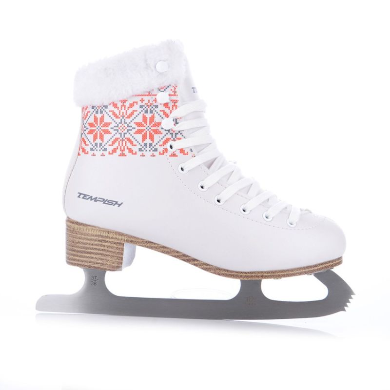Łyżwy figurowe TEMPISH Freya II Klasyczna elegancja z nowoczesnym designem Łyżwy figurowe TEMPISH Freya II to damski model, idealnie sprawdzi się podczas rekreacyjnej jazdy na lodzie, szczególnie dla osób ceniących styl i komfort. Głowne cechy: Unikalny design: Wykonane z materiału PVC Cool Resist z połyskującym wykończeniem PEARL EFFECT, uzupełniona subtelnym nadrukiem inspirowanym zimową aurą. Wysoka jakość materiału: Polerowane ostrze ze stali powlekanej zapewnia trwałość oraz płynny, pewny ślizg. Komfort i izolacja: Anatomiczna piankowa wyściółka w okolicy języka gwarantuje dopasowanie i wsparcie, a miękka imitacja futra wewnątrz łyżwy zapewnia ciepło i wygodę nawet w niskich temperaturach. Łyżwy figurowe TEMPISH Freya II to stylowe, komfortowe i niezawodne łyżwy, które sprawią, że każda jazda na lodzie stanie się wyjątkową przyjemnością. Specyfikacja techniczna – Łyżwy figurowe Zalecane zastosowanie Rekreacyjne łyżwiarstwo figurowe Materiał zewnętrzny Chłodna odporność PVC z wykończeniem powierzchni PERŁOWY EFEKT z nadrukiem, syntetyczne futerko SUPER MIĘKKIE FUTRO ZABAWY w górnej części Materiał wewnętrzny SUPER MIĘKKIE FUTRO – zapewniające izolację termiczną Anatomiczna kostka NIE Budowa Klasyczne łyżwy figurowe ze średnio-wysoką konstrukcją buta. Anatomiczny język z miękką wyściółką Ostrze TEMPISH nowy projekt WAVE, stal powlekana, polerowana System mocowania Sznurowadła Wyściółka SUPER MIĘKKIE FUTRO ZABAWNE – zapewniające izolację termiczną