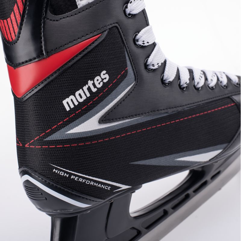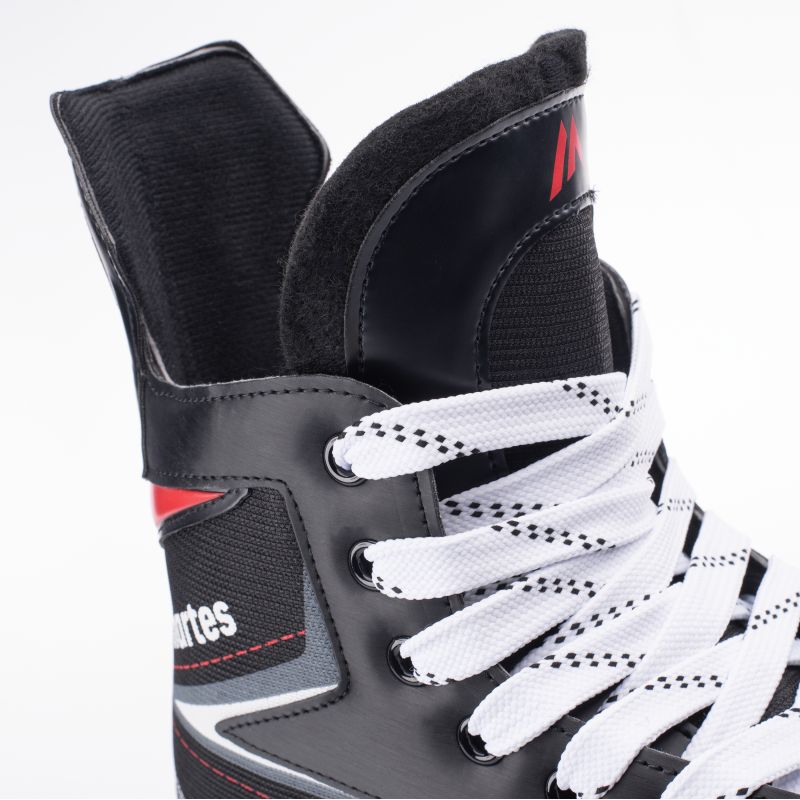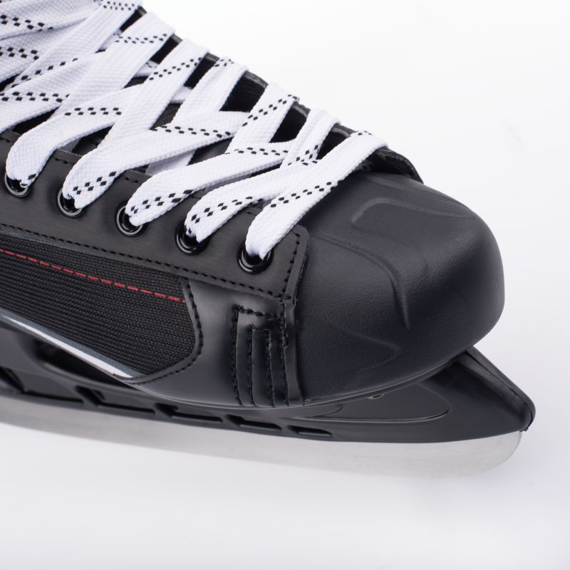 ŁYŻWY HOKEJOWE ROZMIAR: 34-47 SKŁAD MATERIAŁOWY: BUT: SIATECZKA + PVC + SKÓRA SYNTETYCZNA PU WYŚCIÓŁKA: WELUR RAMA: PE OSTRZE: MATERIAŁ NIERDZEWNY OSŁONA OSTRZA: PP SPECYFIKACJA: - WYJMOWANA WKŁADKA - WODOODPORNE - MATERIAŁ SYNTETYCZNY - STAL NIERDZEWNA