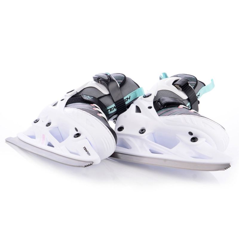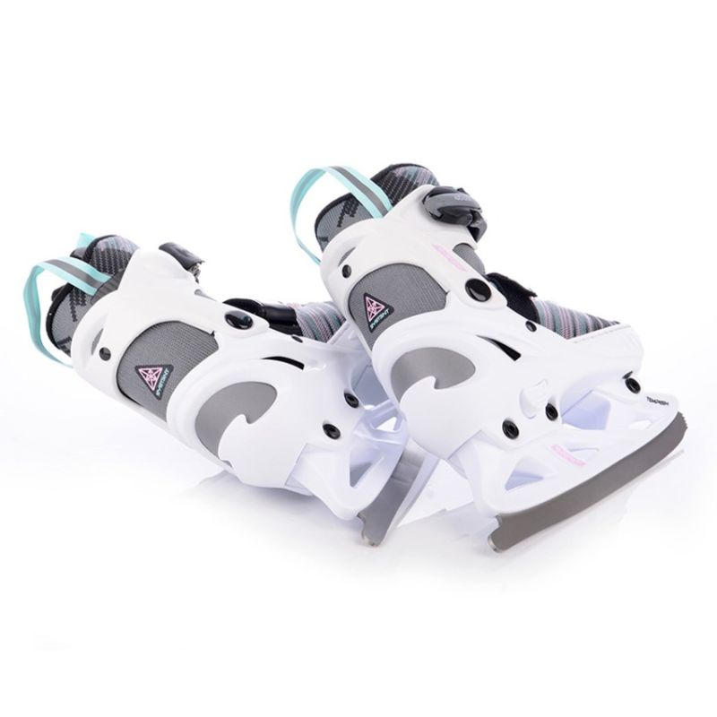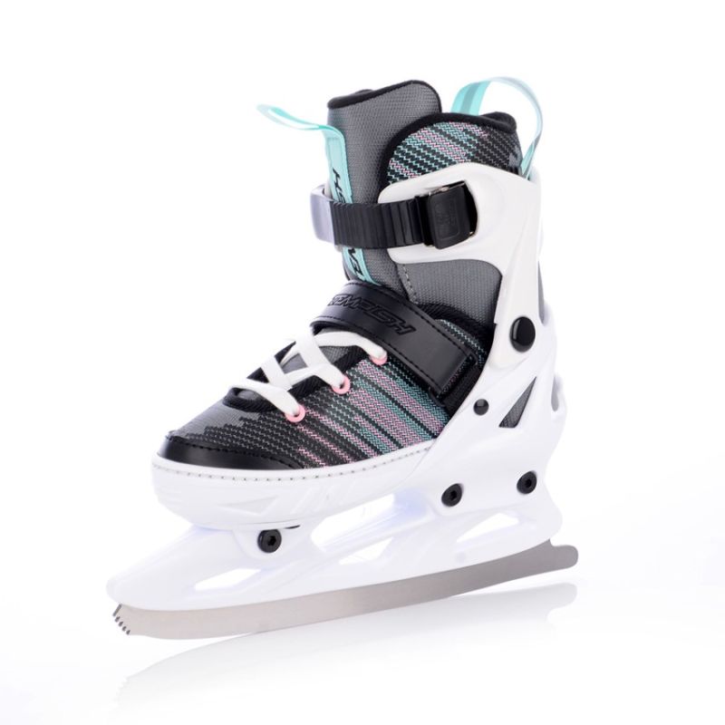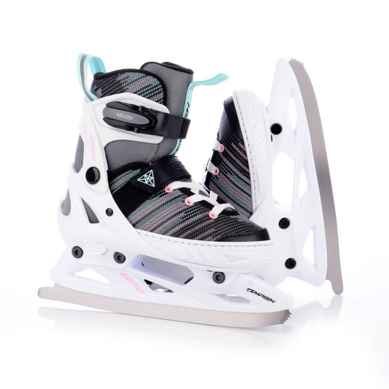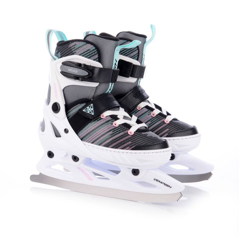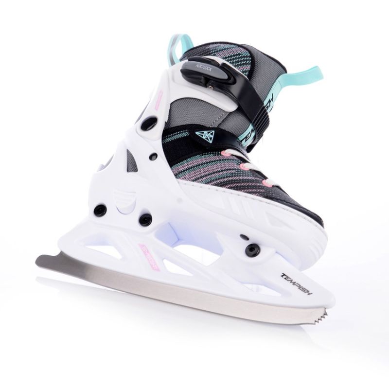 Łyżwy regulowane TEMPISH Systent Girl Komfort, bezpieczeństwo i dopasowanie dla najmłodszych Łyżwy TEMPISH Systent Girl to doskonały wybór dla dziewczynek rozpoczynających swoją przygodę z jazdą na lodzie, jak i dla tych, którzy chcą rozwijać swoje umiejętności. Dzięki regulacji rozmiaru, solidnej konstrukcji i wygodnej wyściółce zapewniają komfort oraz bezpieczeństwo podczas każdej jazdy. Główne cechy: Regulacja rozmiaru i wygoda użytkowania: System powiększania w zakresie 4 rozmiarów za pomocą przycisku z boku szkieletu Pętelka na języku ułatwiająca szybkie zakładanie i zdejmowanie Komfort i dopasowanie: Miękka, szybkoschnąca wyściółka utrzymująca ciepło i wygodę Anatomiczny kształt wewnętrznego buta zapewniający pewne trzymanie stopy Bezpieczeństwo i trwałość: Wytrzymały plastikowy szkielet stabilizujący kostkę Elementy odblaskowe z tyłu zwiększające widoczność w słabym oświetleniu Odporność na niskie temperatury do -20°C TEMPISH Systent Girl to regulowane łyżwy stworzone z myślą o rosnących stopach dziecka. Łączą funkcjonalność, bezpieczeństwo i komfort, pozwalając młodym łyżwiarzom cieszyć się jazdą na lodzie przez wiele sezonów. PARAMETRY TECHNICZNE Przeznaczenie Sport rekreacyjny Ostrze Stal TEMPISH UNI CARBON – stal nierdzewna Materiał zewnętrzny Trójczęściowy szkielet – TPU (elastyczny do -20°C), miękka wyściółka, PVC BRILLIANT RESIST, NYLON+NYLEX Materiał wewnętrzny CAMBRA 26Z szczotkowany nylon z wewnętrzną wyściółką System mocowania Sznurowadła, 1x klamra, 1x pasek z rzepem Regulacja rozmiaru Tak Limit wagowy 60 kg