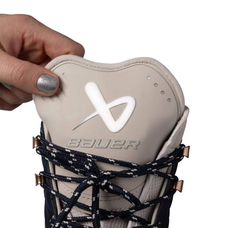 Łyżwy rekreacyjne Bauer Radiant podgrzewane Junior To pierwsze w historii podgrzewane łyżwy na lodzie, stworzone w ramach innowacyjnej kolekcji BAUER REDLINE. Wyposażone w wyściółkę grzewczą z trzema poziomami regulacji ciepła, zapewniają komfort i wygodę nawet w najbardziej mroźne dni. Główne cechy: Innowacyjne podgrzewanie: Za pomocą przycisku umieszczonego na języku można uruchomić elementy grzewcze wbudowane w wyściółkę, wybierając jeden z trzech trybów pracy. Wodoodporny akumulator umieszczony w języku zapewnia do 7 godzin* ciepła, a jego ładowanie jest proste i szybkie. Czas działania zależy od wybranego poziomu intensywności ogrzewania. Wysoka jakość materiału – ciepło i wygoda: Izolowana warstwa zewnętrzna inspirowana kurtką puchową skutecznie zatrzymuje ciepło, a gruba, miękka wyściółka gwarantuje komfort porównywalny z wejściem do ciepłej chatki po dniu spędzonym na mrozie. Funkcjonalność i gotowość do jazdy: Łyżwy dostarczane są wstępnie naostrzone (ostrze o promieniu ½”), co pozwala rozpocząć jazdę od razu po wyjęciu z pudełka. Profil ostrza zapewnia optymalną równowagę i płynny poślizg – idealne rozwiązanie dla początkujących i rekreacyjnych łyżwiarzy. Dopasowanie: R - ogólna szerokość buta stworzona aby pasowała do jak największego grona odbiorców Łyżwy rekreacyjne Bauer Radiant podgrzewane Jr to przełomowe rozwiązanie dla osób, które chcą cieszyć się jazdą na lodzie w pełnym komforcie i cieple. Dzięki nowoczesnej technologii grzewczej i gotowości do użycia od razu po zakupie, są doskonałym wyborem dla każdego miłośnika zimowej rekreacji. PARAMETRY TECHNICZNE Przeznaczenie Jazda rekreacyjna Ostrza Stal powlekana, wstepnie naostrzona Materiał Tworzywo sztuczne. Zewnętrzna warstwa inspirowana kurtką puchową Język Akumulator znajdujący się w wodoodpornym języku można łatwo wyjąć i w pełni naładować. Możliwość wymiany ostrzy w systemie EDGE Nie Termoformowanie Nie Wyściółka Podgrzewana, gruba, miękka, izolowana