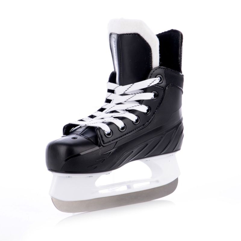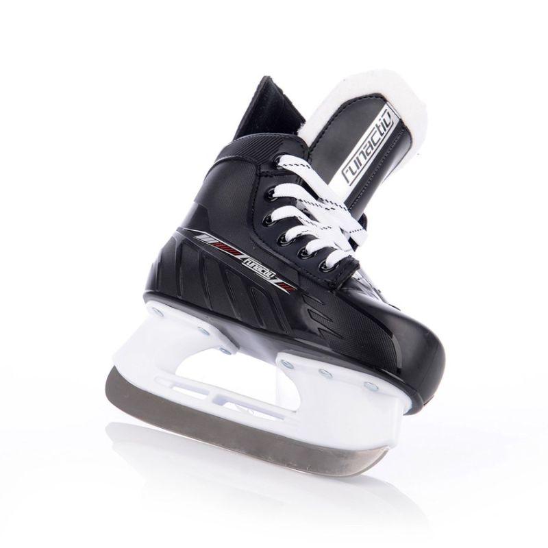 Łyżwy rekreacyjne FunActiv Icetrack Kid Komfort, ochrona i radość z jazdy na lodzie! Łyżwy rekreacyjne FunActiv Icetrack Kid to doskonały wybór dla najmłodszych miłośników jazdy na łyżwach i początkujących hokeistów. Zostały zaprojektowane tak, aby zapewnić idealne połączenie wygody, trwałości i bezpieczeństwa. Dzięki lekkiej konstrukcji i solidnym materiałom gwarantują pełną kontrolę nad ruchem, stabilność oraz ochronę stopy podczas nauki jazdy czy rekreacyjnych zabaw na lodowisku. Główne cechy: Wytrzymała skorupa: Zrobiona z wysokiej jakości tworzywa kompozytowego, które łączy niską wagę z odpornością na uderzenia. Skutecznie chroni stopę dziecka przed kontaktem z krążkiem lub kijem. Anatomiczny język: Dwuczęściowa, średnio wyściełana konstrukcja idealnie dopasowuje się do kształtu podbicia, gwarantując stabilne trzymanie kostki i wygodę w czasie jazdy. Komfort i dopasowanie: Wnętrze buta zostało zaprojektowane tak, by zapewnić ciepło i wygodę nawet podczas dłuższej zabawy na lodzie. Uniwersalne zastosowanie: Idealne zarówno do nauki jazdy, jak i rekreacyjnej gry w hokeja. Łyżwy FunActiv Icetrack Kid to pewność, bezpieczeństwo i frajda z każdego ślizgu – idealny wybór dla dzieci stawiających swoje pierwsze kroki na lodzie! PARAMETRY TECHNICZNE Zalecane zastosowanie Jazda rekreacyjna i treningowa na łyżwach, dla początkujących i zaawansowanych łyżwiarzy Materiał zewnętrzny Solidny, odporny materiał PVC (DF klasy lodowej), elastyczny do -25°C Materiał wewnętrzny Szczotkowany nylon CAMBRA 26Z, ekskluzywna wkładka TEMPISH umożliwiająca dopasowanie rozmiaru Wyściółka Anatomiczna wyściółka z pianką E3 memory foam w okolicy kostki Budowa języka Klapka anatomiczna (1 szt.), specjalny PVC Ice Grade DF + filc 6 mm Ostrze TEMPISH UNI Carbon Junior Regulacja rozmiaru Tak System mocowania Sznurowadła