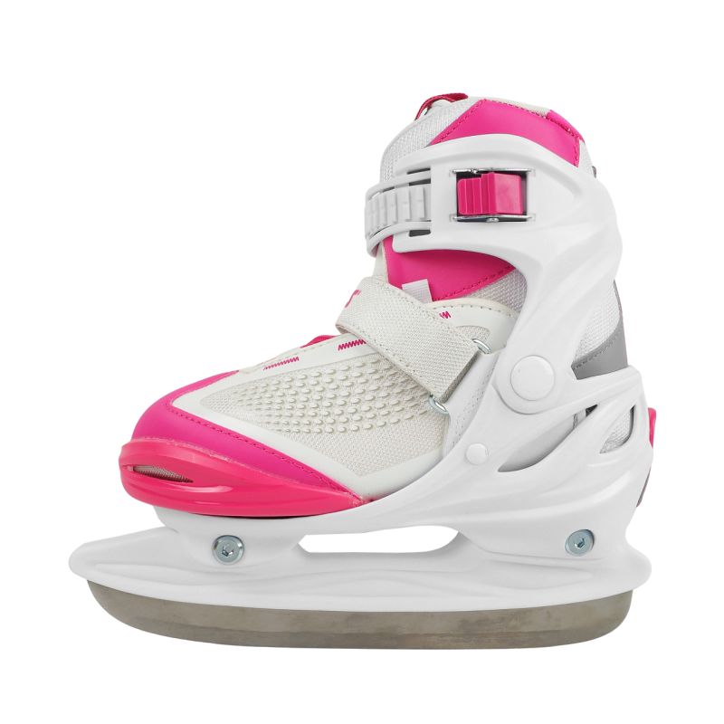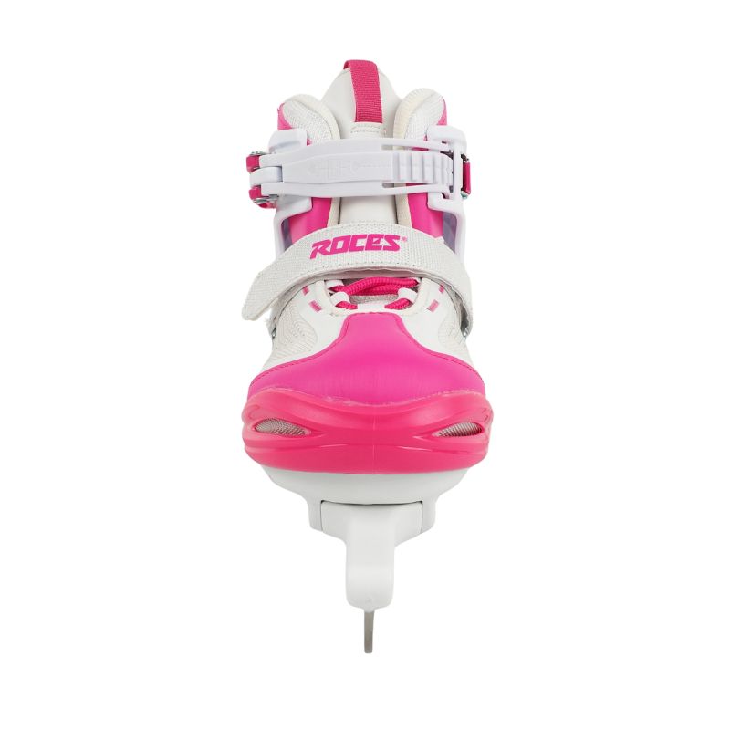 Łyżwy Roces Moody Ice X biało-różowe 450744 001 Dziewczęce łyżwy hokejowe z regulacją rozmiaru. Anatomiczna, termicznie izolowana wkładka. Zapięcie na sznurowanie, rzep oraz klamrę Memory Buckle, która umożliwia zapinanie i odpinanie bez konieczności każdorazowego dopasowywania długości paska od nowa. Skorupa z polipropylenu. Płoza hokejowa ze stali nierdzewnej. Dane techniczne:· Skorupa: QH Polipropylene· 3-stopniowe zapięcie (klamra Memory Buckle, sznurowadła, rzep)· Regulacja rozmiarów· Płoza hokejowa ze stali nierdzewnej
