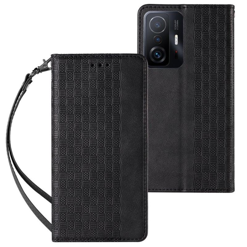 Magnet Strap Case etui do Samsung Galaxy A13 5G pokrowiec portfel + mini smycz zawieszka czarny