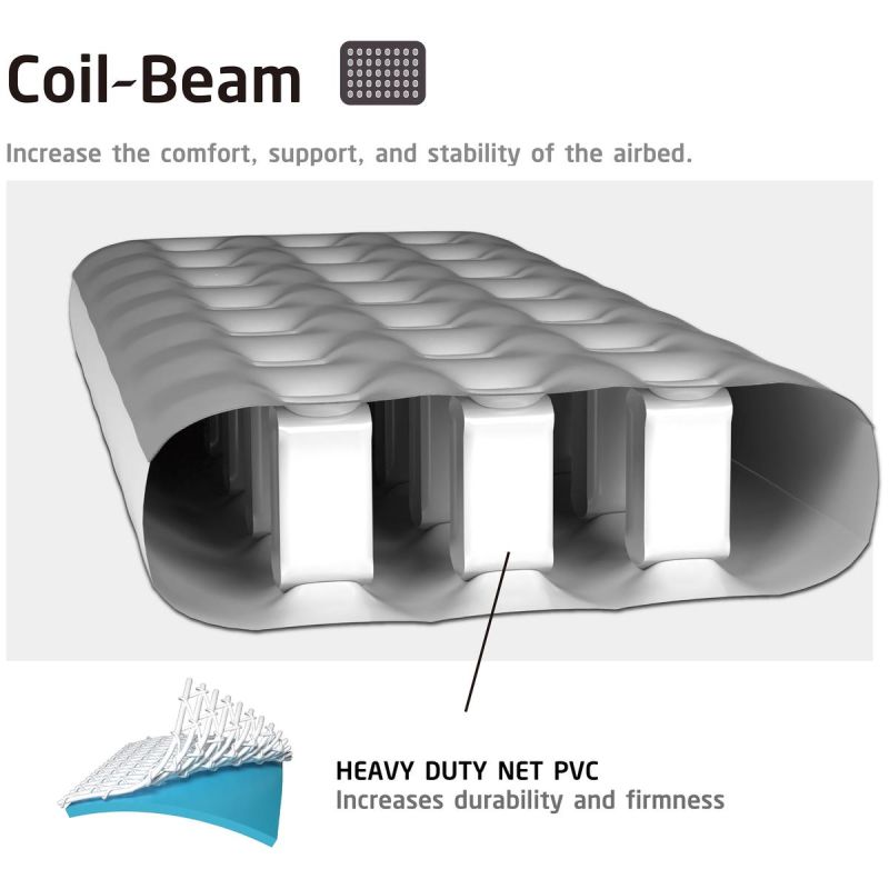 Konstrukcja Coil Beam to doskonałe rozwiązanie dla osób, które oczekują od materaca dmuchanego nie tylko wygody, ale także trwałości i stabilności. Dzięki zastosowaniu pionowych belek, materac oferuje doskonałe wsparcie i komfort podczas użytkowania. Idealny na wyjazdy, do domu, do ogrodu czy na działkę.