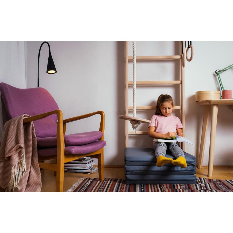 Materac po złożeniu nie zajmuje wiele miejsca. Można umieścić go w górnej części drabinki gimnastycznej.