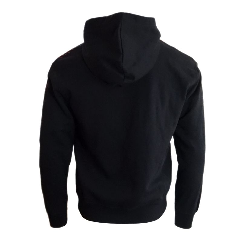 Całość utrzymana jest w czarnej kolorystyce z czerwonymi akcentami, co nadaje bluzie dynamicznego, nowoczesnego wyglądu.
