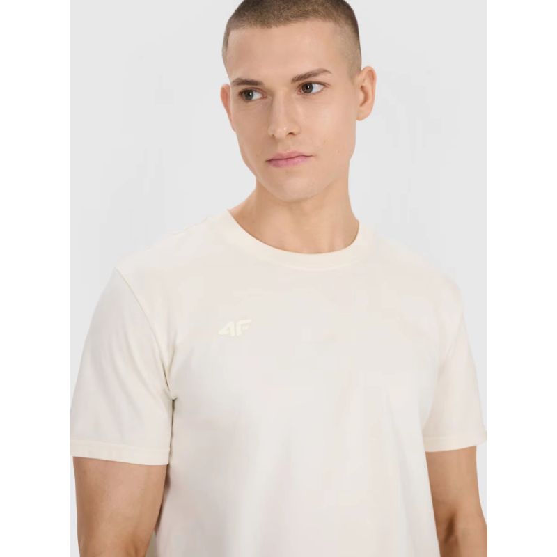 Materiał o gramaturze 180 gsm i splot single jersey zapewnia optymalną grubość, trwałość oraz gładką, sprężystą strukturę. Okrągły dekolt z delikatnym wykończeniem typu rib podnosi komfort noszenia, a nadruk z logo „4F All Round Athletic Apparel” na plecach podkreśla sportowy charakter odzieży.