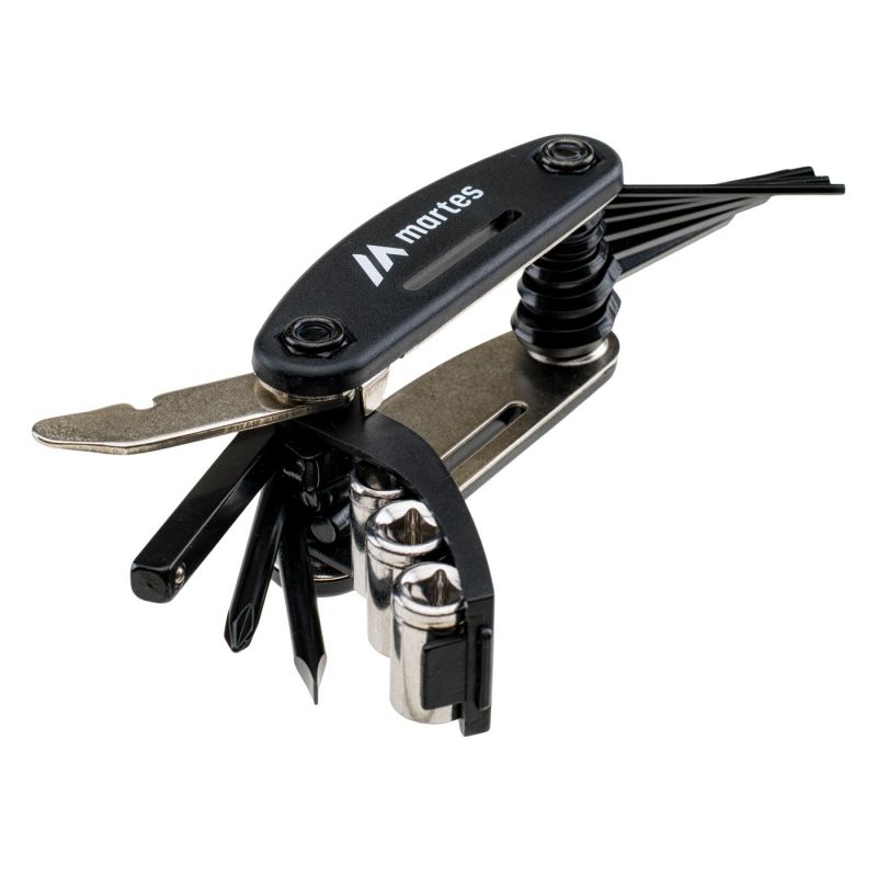 ZESTAW NARZĘDZI ROWEROWYCH SKŁAD MATERIAŁOWY: ABS, STAL SPECYFIKACJA: - IMBUS: 2/2.5/3/4/5/6 mm - ŚRUBOKRĘT PŁASKI - ŚRUBOKRĘT KRZYŻAKOWY - NOŻYK - NASADKI: 8/9/10 mm