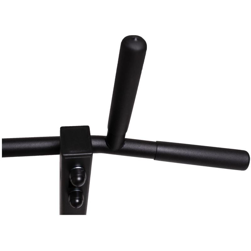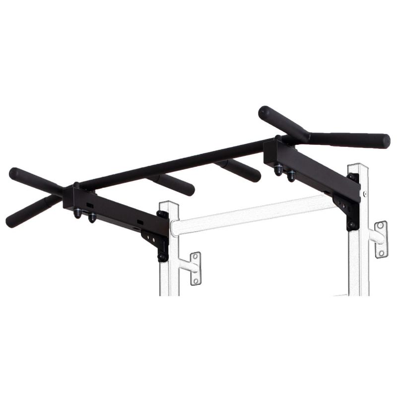 Montowany na stałe metalowy drążek do podciągania, który wyposażony jest w 6 różnych rączek pozwala pracować nad siłą mięśni ramion i pleców za pomocą różnych chwytów, np. chwytem szerokim.
