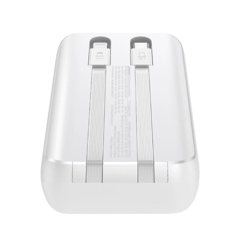 Mini powerbankJoyroom JR-PBC06 o mocy do 30W i pojemności 10000 mAh z wbudowanymi kablamiUSB-C i Lightning - biały