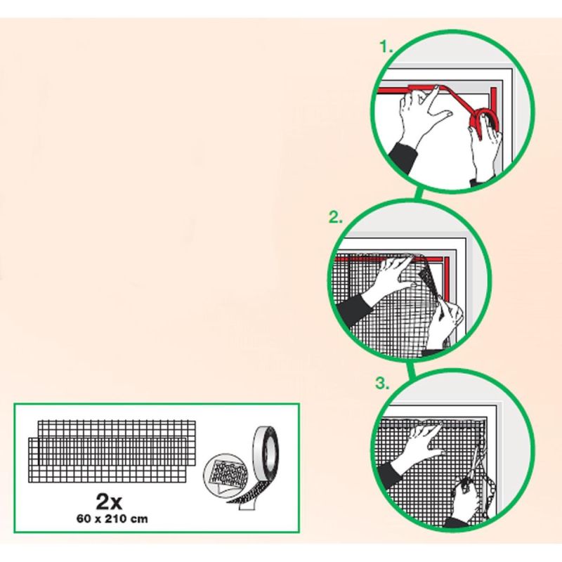 MOSKITIERA DRZWIOWA 2X60X210 OD EASY LIFE MAKO to skuteczne rozwiązanie, które chroni przed niechcianymi owadami jednocześnie przepuszczając powietrze. Możesz ją indywidualnie dopasować do wymiaru drzwi (wystarczy, że przytniesz materiał) i zamontować na dopasowanym pasku mocującym dołączonym do zestawu. Dzięki mocowaniu za pomocą taśmy samoprzylepnej zamontujesz ją szybko bez wiercenia i wkręcania, czyli bez pozostawiania śladów na ramie okna. Produkt wykonany jest z wytrzymałej siatki poliestrowej oraz mocnej taśmy odpornej na wiatr czy deszcz.