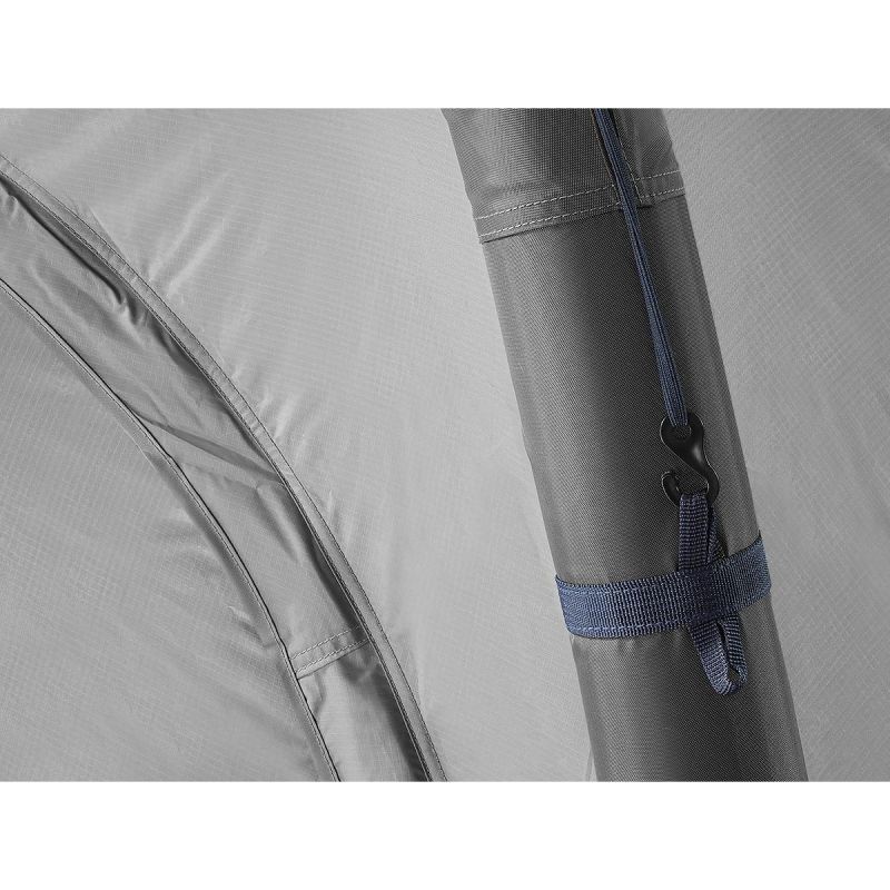 Zamiast tradycyjnego stelaża namiot posiada dmuchane rurki, które po napompowaniu nadają mu stabilność i wytrzymałość. To rozwiązanie pozwala na błyskawiczne rozstawienie namiotu bez skomplikowanego montażu. Wystarczy użyć pompki, aby w kilka minut cieszyć się gotowym miejscem do odpoczynku.