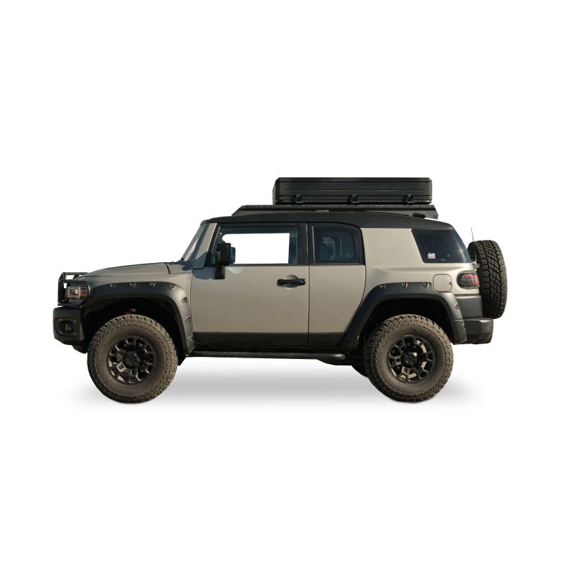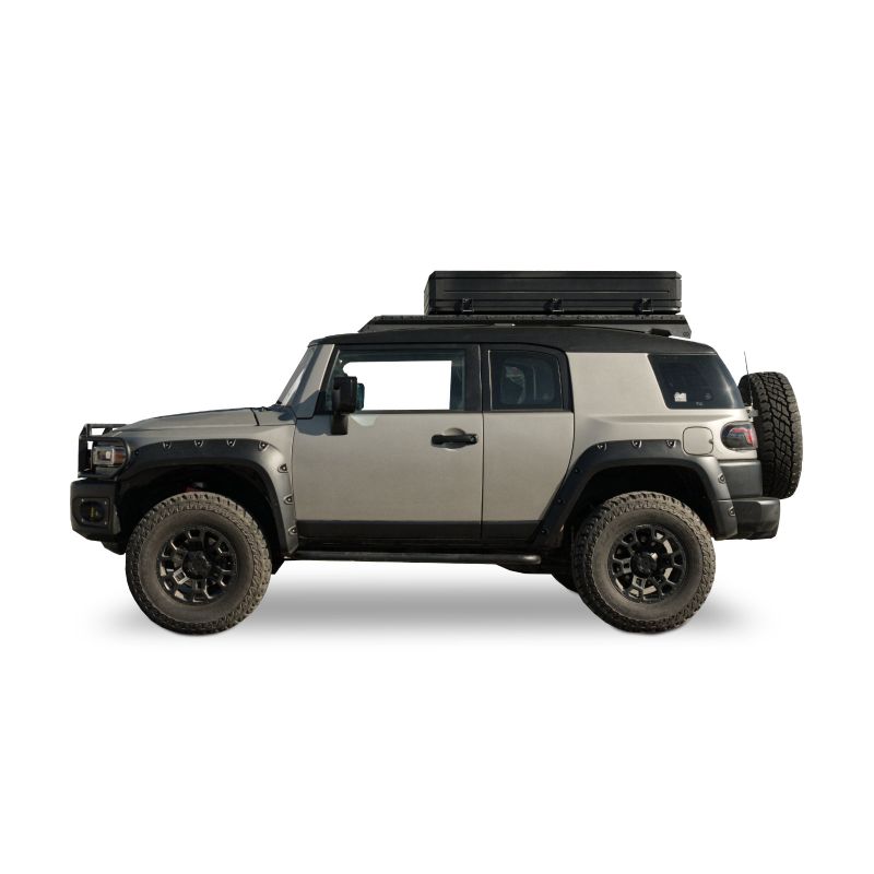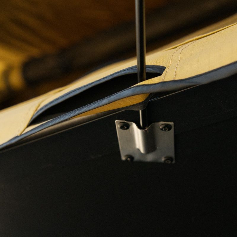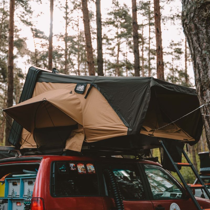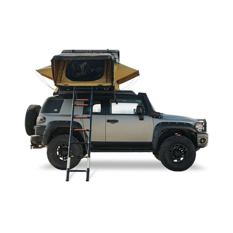 Dodatki: drabinka teleskopowa, torba na buty, kieszenie na akcesoria, oświetlenie LED do podpięcia pod powerbank, mata antykondensacyjna, dodatkowe śruby montażowe T-SLOT, uchwyt do zamykania namiotu, zadaszenie.