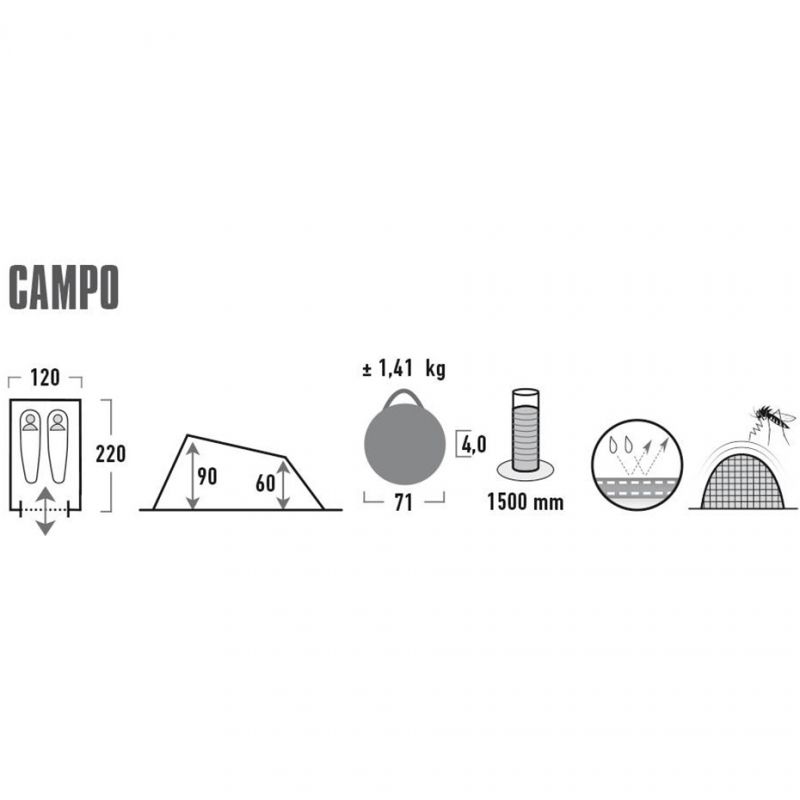 - Namiot High Peak Campo zadba o wygodę wypoczynku i oszczędzi mnóstwo czasu podczas jego rozkładania.