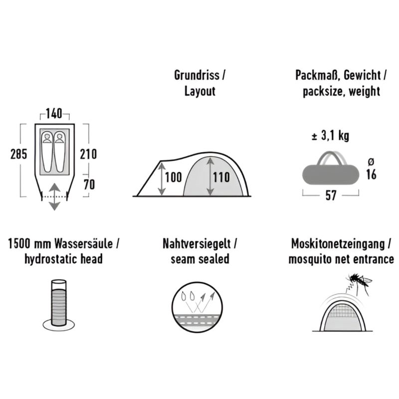 - 2-osobowy namiot kopułowy z przedsionkiem High Peak idealny na krótki biwak, festiwal, krótką wędrówkę.