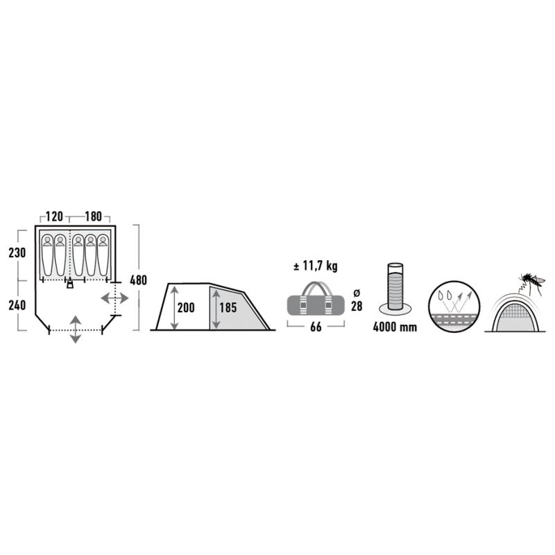 - Przedsionek z podłogą doskonale sprawdzi się jako kuchnia czy pomieszczenie gospodarcze.Dwa niezależne wejścia zapewniają maksimum wygody podczas biwakowania, a dwie sypialnie sprawiają, że jest to właściwy wybór dla rodzin.