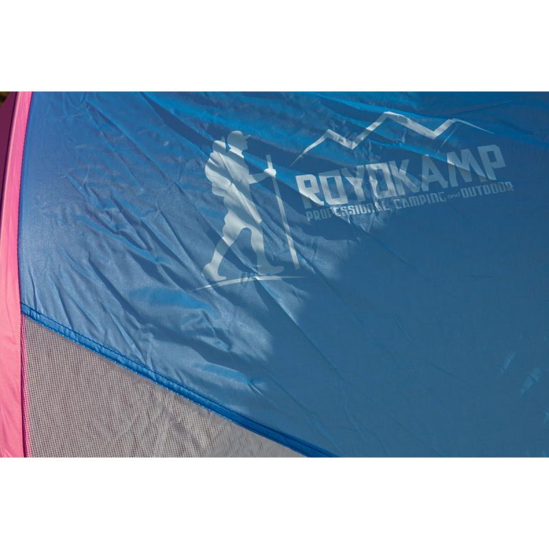 NAMIOT PARAWAN PLAŻOWY SAMOROZKŁADAJĄCY ROYOKAMP sprawdzi się podczas wszystkich Twoich wyjazdów nad morze, jezioro czy na biwak. Ten samorozkładający się namiot od ROYOKAMP, to wysokiej jakości produkt o szerokości 120 cm, głębokości 200 cm oraz wysokości 88 cm, spakowany w wygodny pokrowiec ułatwiający jego transport i przechowywanie. Jego stelaż z włókna szklanego charakteryzuje się dużą lekkością i odpornością na uszkodzenia mechaniczne. Pokrycie uszyte zostało z mocnego poliestru 150T, który chroni przed szkodliwym promieniowaniem UV oraz zapewni wodoodporność na poziomie 400 mm słupa wody. Po bokach zostały umieszczone liczne wstawki z siatki, które zapewnią wysoką wentylację w samym środku.