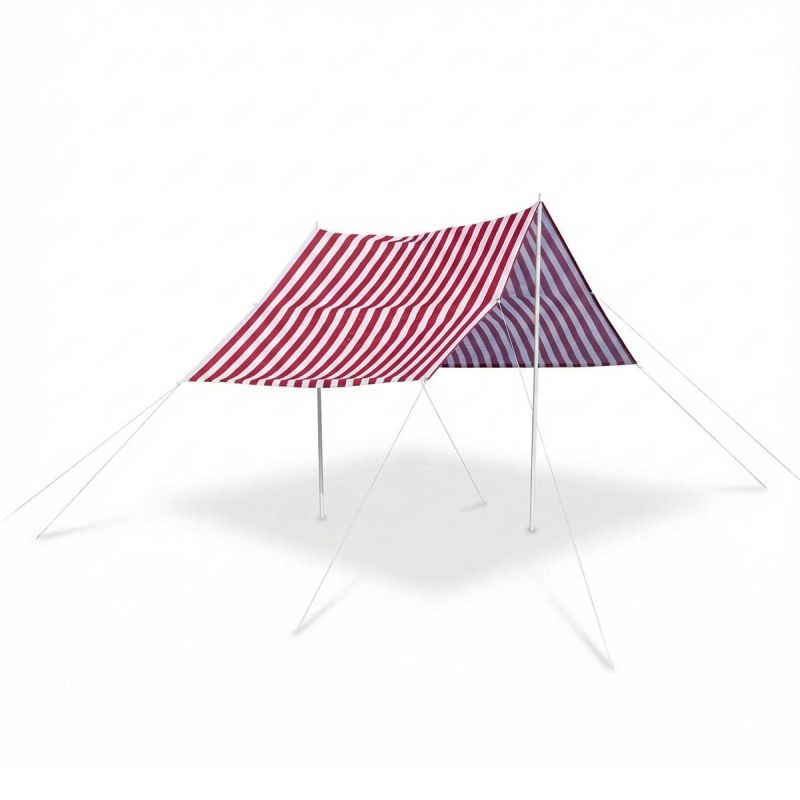 Dołączone do namiotu metalowe słupki i linki naprężające ze śledziami pozwolą rozłożyć żagiel w dowolnym miejscu i użyć w dowolnym celu.