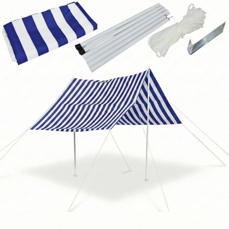 Dołączone do namiotu metalowe słupki i linki naprężające ze śledziami pozwolą rozłożyć żagiel w dowolnym miejscu i użyć w dowolnym celu.