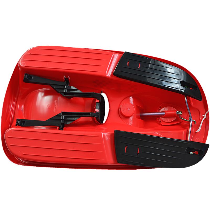 - sterowanie za pomocą kierownicy - ruchy kierownicy poruszają przednimi płozami- solidna dźwignia hamulca ręcznego pozwala na szybkie hamowanie- hamulec ręczny wzmocniony metalowymi zębami- duże siedzisko zapewnia wygodę-