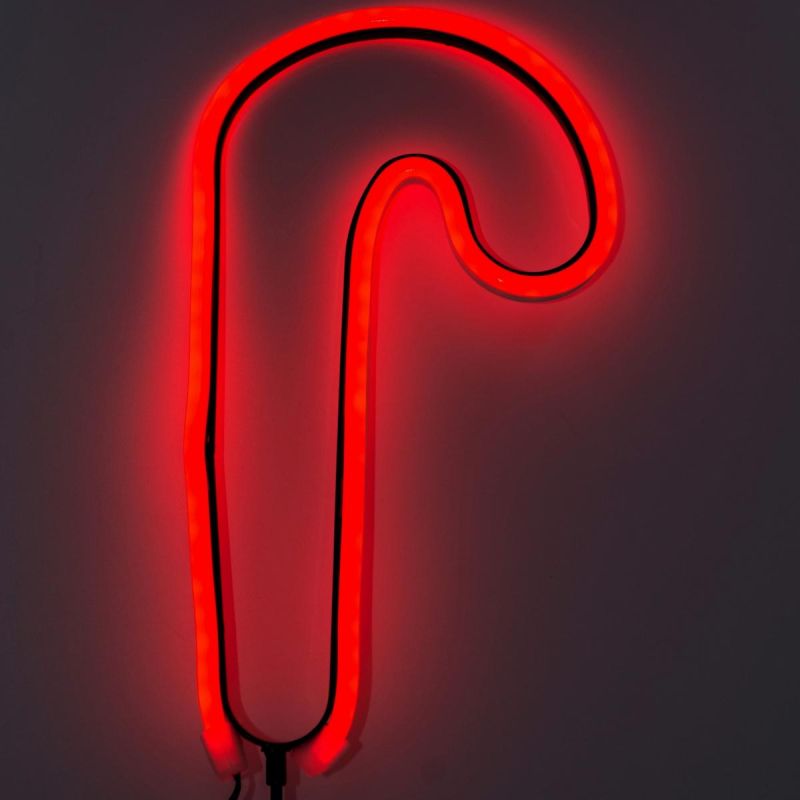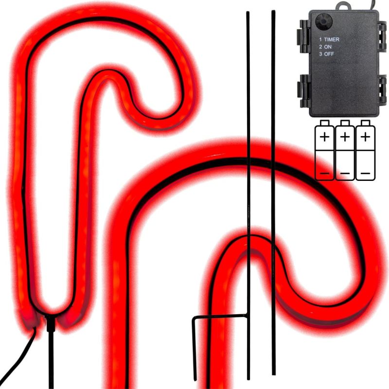 NEON LASKA ŚWIĄTECZNA 79 LED NA BATERIE 12,5x93,5 CM LUCA łączy tradycyjny kształt laski świątecznej z minimalistycznym designem LED, oferując elegancką dekorację gotową do umieszczenia gdziekolwiek chcesz – bez konieczności doprowadzania prądu.