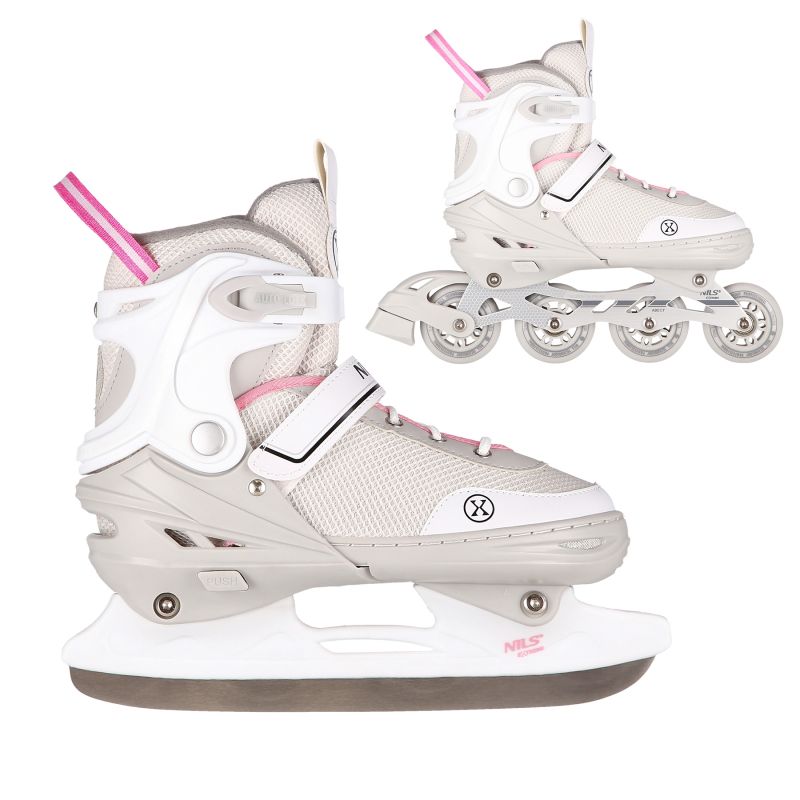 4. NH18188A 2w1 SZARO-RÓŻOWE ROZM.M(34-38) ŁYŻWOROLKI Z WYM. PŁ. HOKEJOWĄ NILS EXTREME