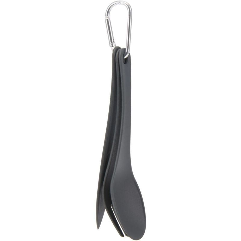 Sztućce zawieszone są na otwieranym karabińczyku dzięki czemu można je wygodnie rozdzielić i korzystać z każdego osobno.